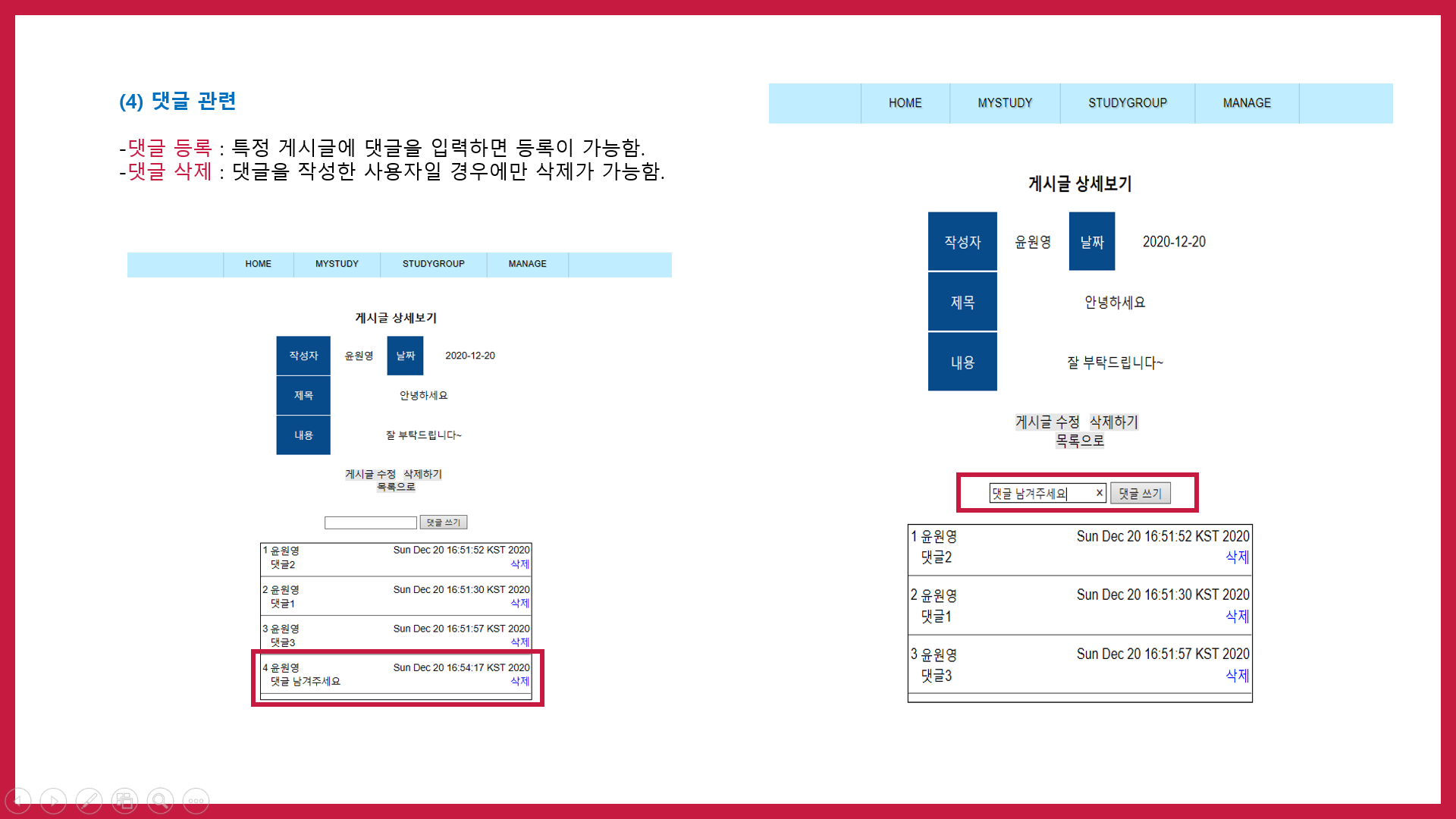 - 댓글 등록