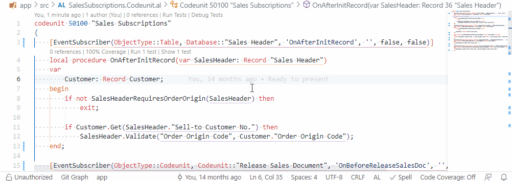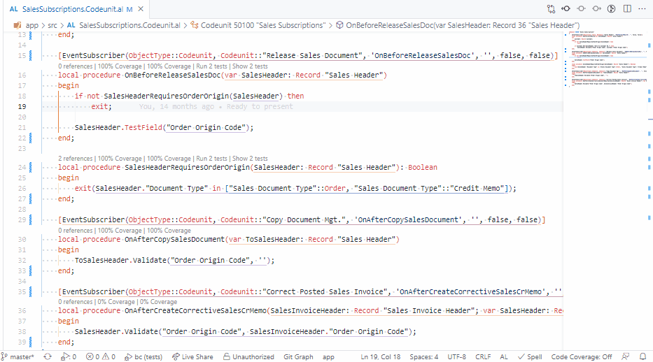 - See which tests call methods in your codeunits and tables