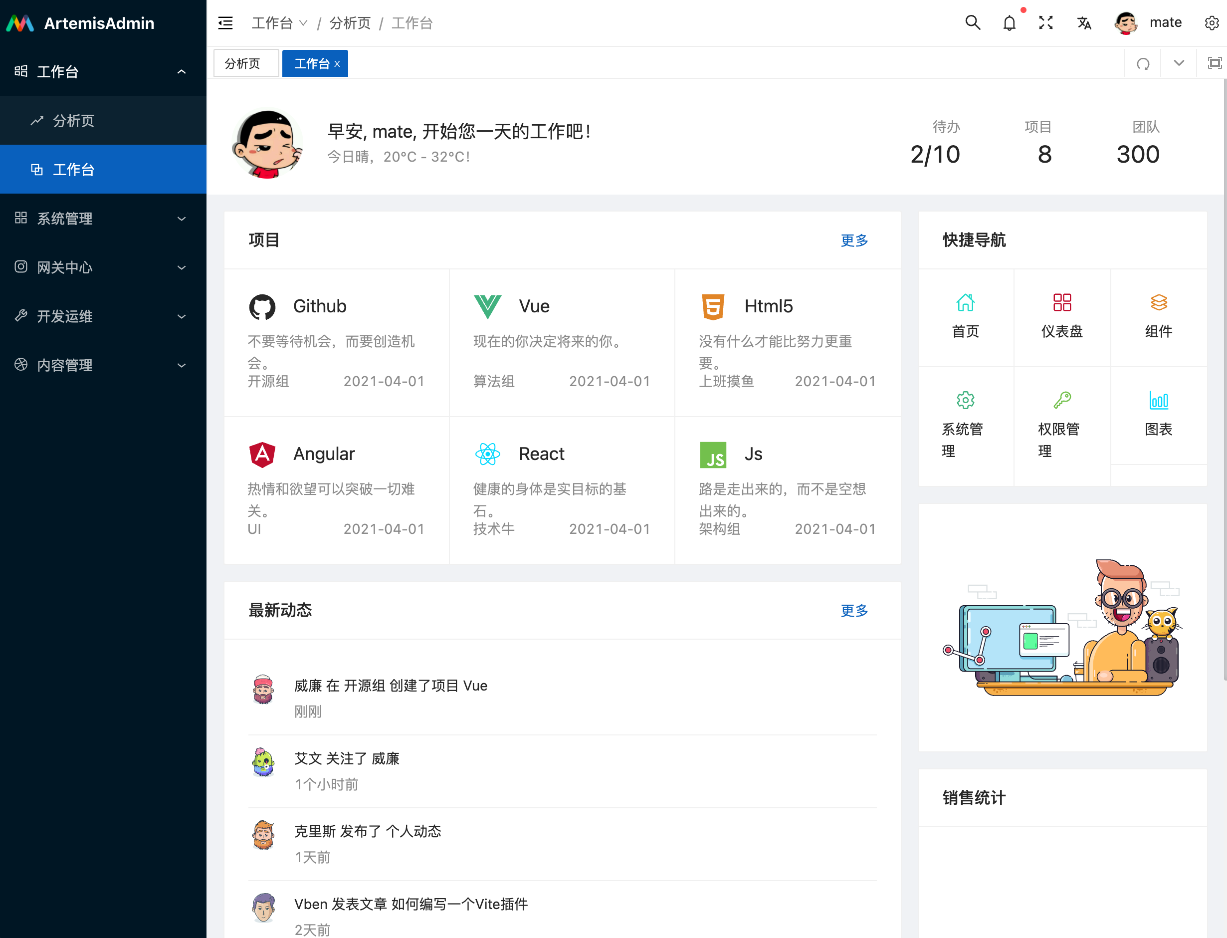 Artemis Admin 是基于vben的模板开发,使用了最新的vue3