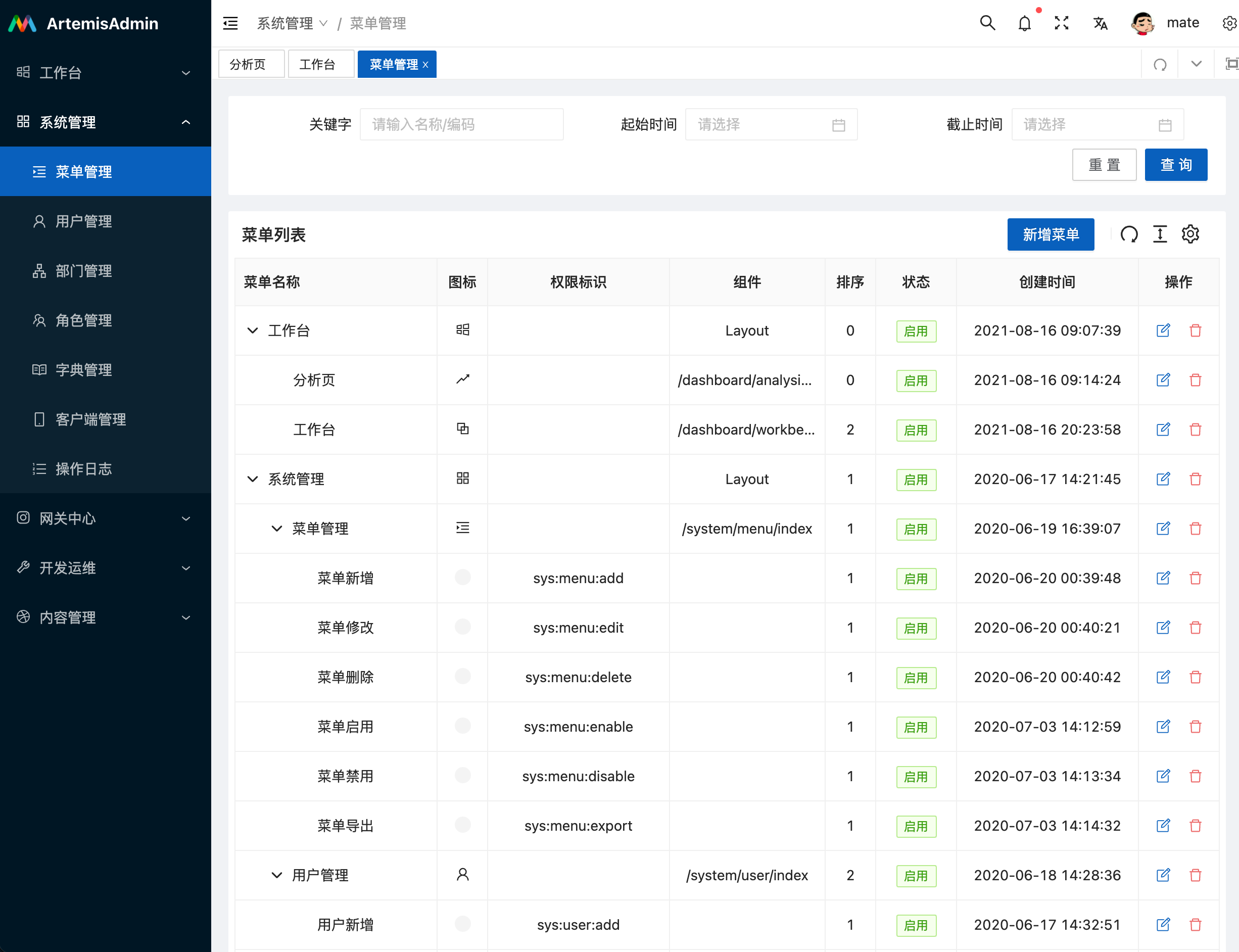 Artemis前端源码 | https://github.com/matevip/artemis | https://gitee.com/matevip/artemis |