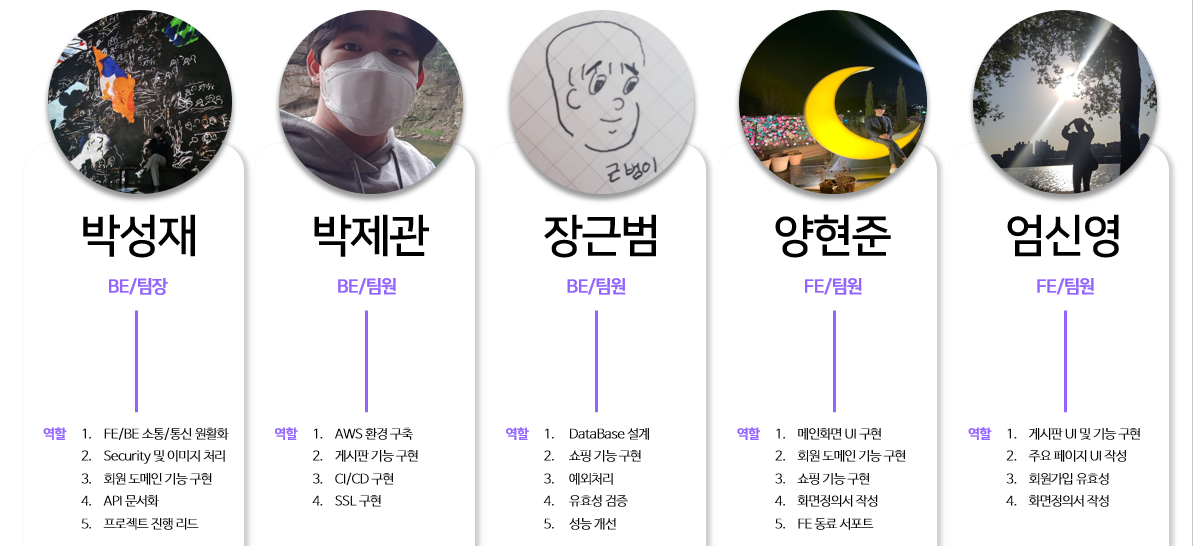 ✔️ 부족한 부분이 있으면 서로 채워주고, 서포트 해주며 팀 전체의 성장을 지향하고 있습니다.