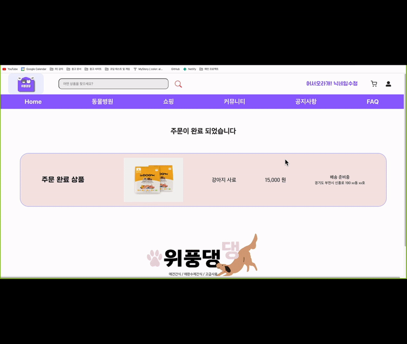 - 장바구니부터 주문하기까지 기능을 구현하였습니다.