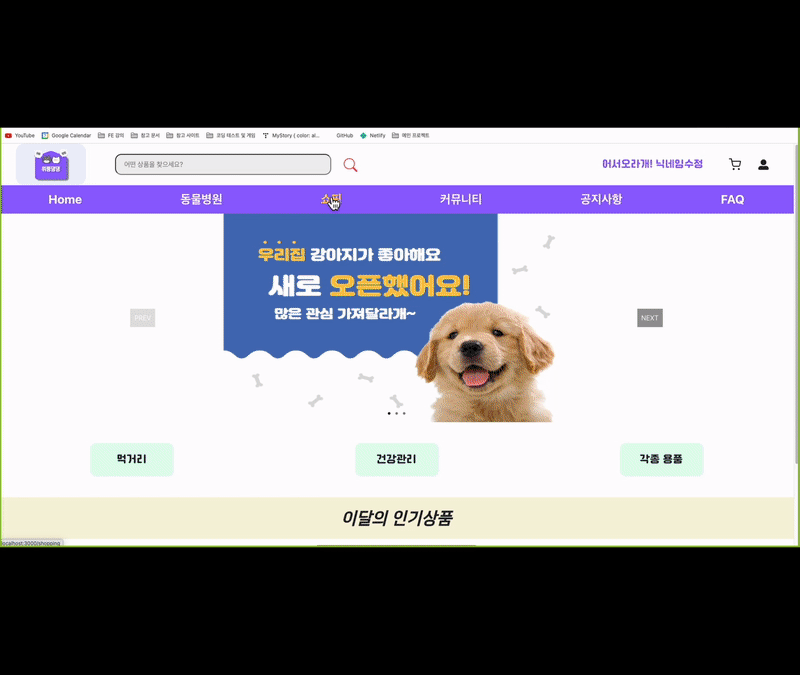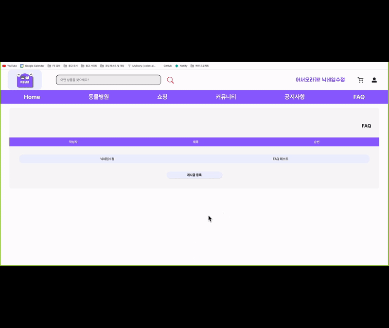 - 로그인을 한 유저의 화면에서만 상품 등록 버튼이 보입니다. (추후 권한 설정을 추가하여 관리자 계정일 때만 보이도록 수정 예정)