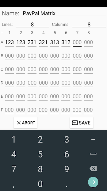 What is a Bank Account Security Matrix Card? Essentially, a table of digits that function as a second layer of authentication (2FA Two-Factor Authentication). On each important transaction your bank will ask you for 3 random digits of this Table to ensure a more secure transaction. Most people save their matrices in paper format, with this app that is a thing of the past!