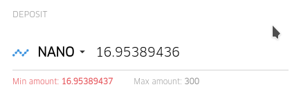 Nano defaults to invalid amount (too small).  Steps to reproduce: 1. Visit homepage. 2. Select NANO from Deposit dropdown.