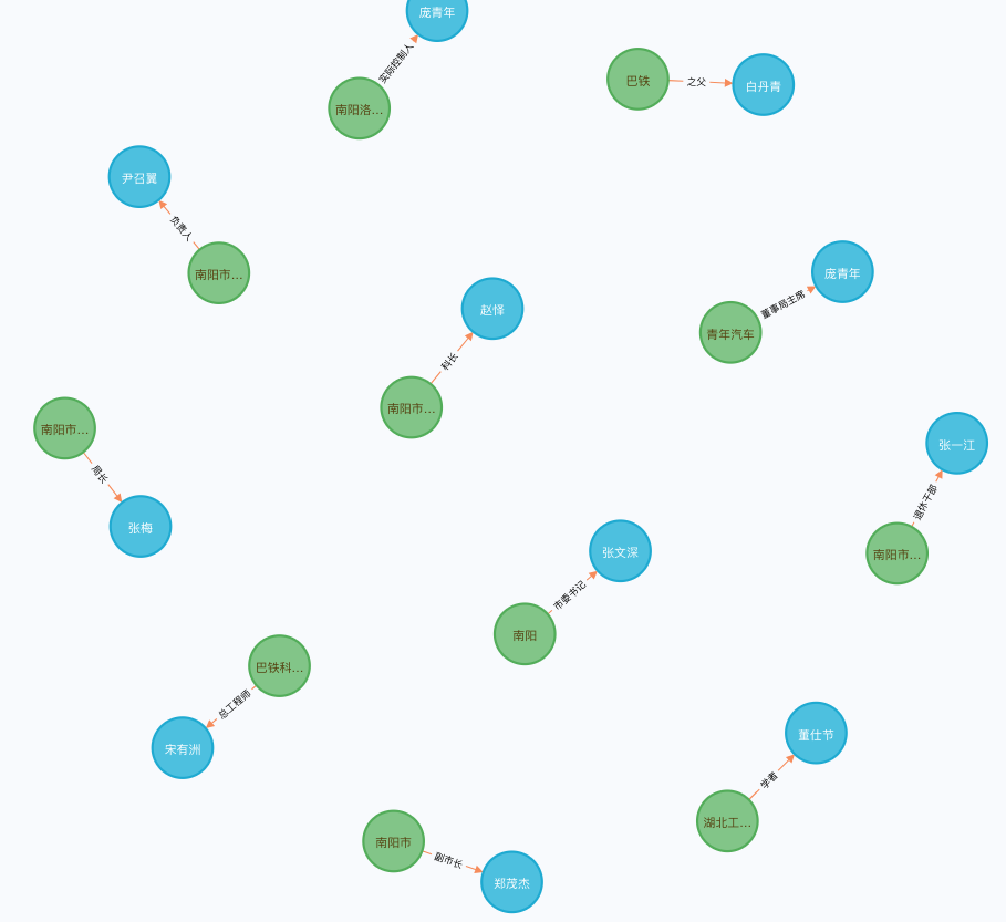将上述关系修改下,导入至Neo4J中,得到的实体关系图如下: