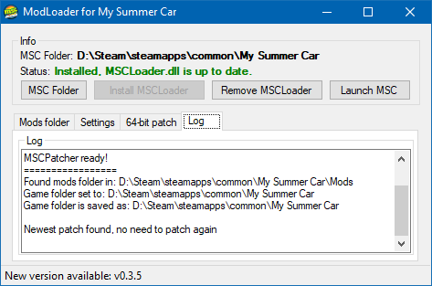 - Status: - Shows current status of MSCLoader.