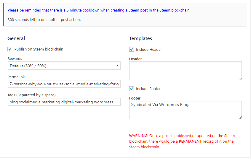 Then I installed the latest version of this plugin on my wordpress blog. Setup the plugin with my steem information(username and private posting key).