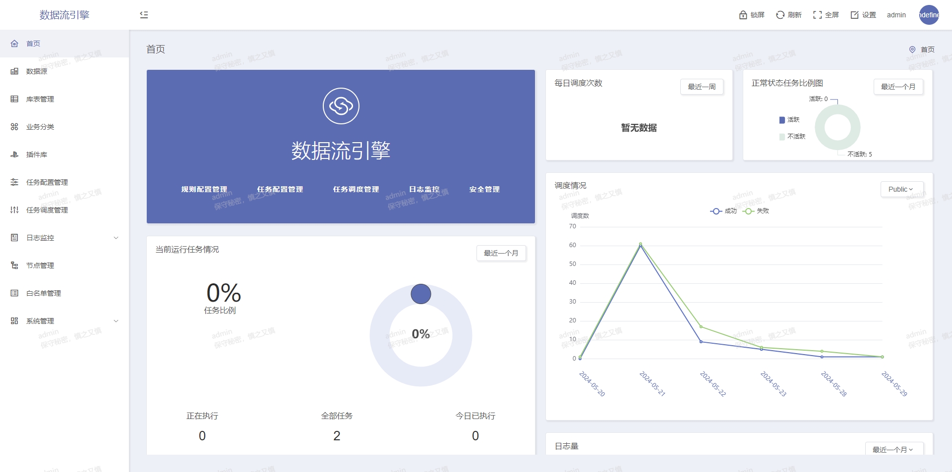 数据流引擎是一款面向数据集成、数据同步、数据交换、数据共享、任务配置、任务调度的底层数据驱动引擎。数据流引擎采用管执分离、多流层、插件库等体系应对大规模数据任务、数据高频上报、数据高频采集、异构数据兼容的实际数据问题。系统在线体验----->>>>>