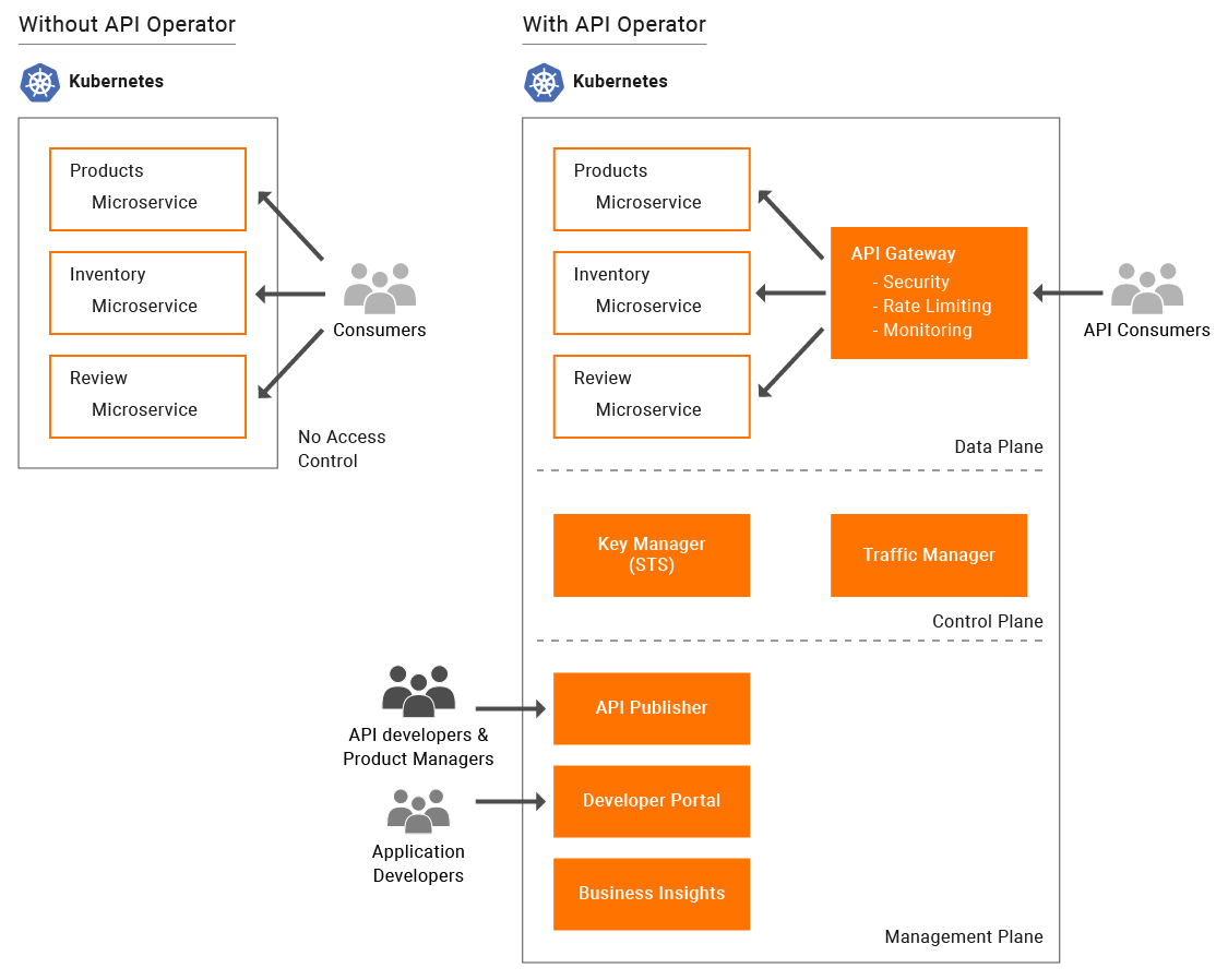 As microservices are increasingly being deployed on Kubernetes, the need to expose these microservices as well documented, easy to consume, managed APIs is becoming important to develop great applications. The API operator for Kubernetes makes APIs a first-class citizen in the Kubernetes ecosystem. Similar to deploying microservices, you can now use this operator to deploy APIs for individual microservices or compose several microservices into individual APIs. With this users will be able to expose their microservice as managed API in Kubernetes environment without any additional work.