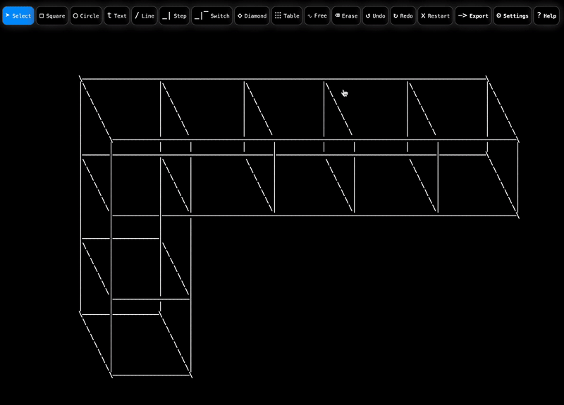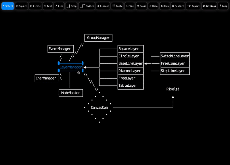 - Layers: Free, Switch Lines, Steps Lines, Free Lines, Square, Circle, Diamond, Text, Table