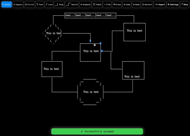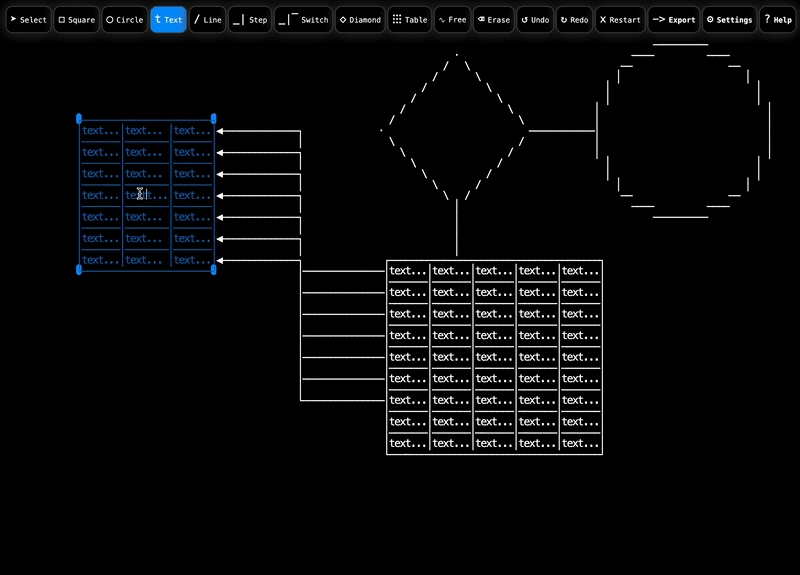 Cascii is a web-based ASCII and Unicode diagram builder written in vanilla Javascript.