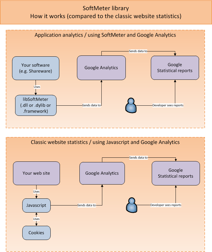 It is ideal for shareware (free vs paid edition) developers as it extends the website usage data with the applications usage data.