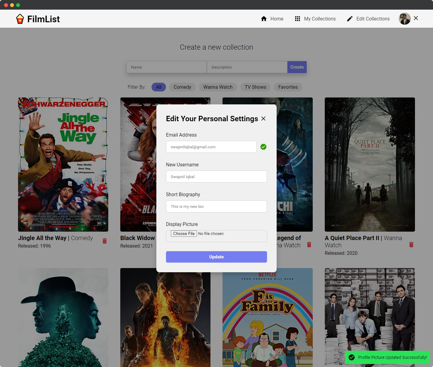 Ability to see a movie's entire information when clicked- Renaming Collections