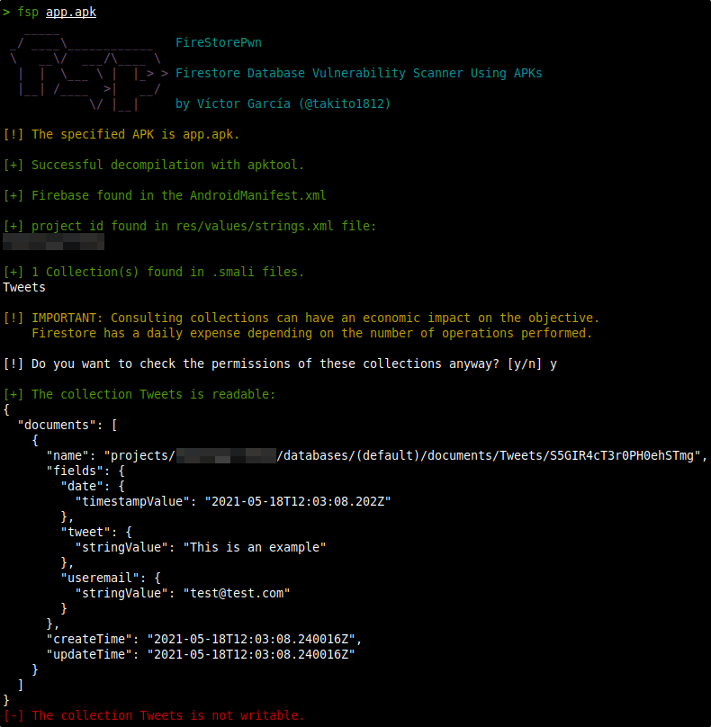 fsp scans an APK and checks the Firestore database for rules that are not secure, testing with or without authentication.