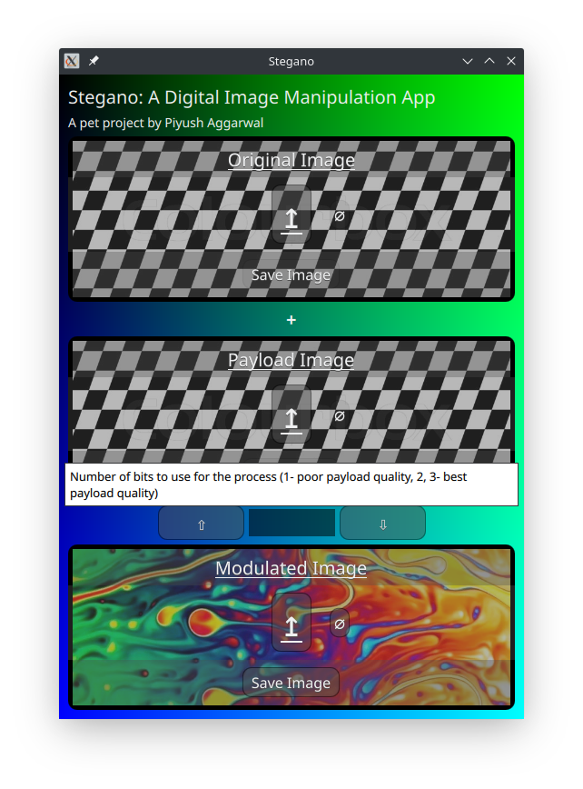 - In the steganography logic supplied with the project, the payload slice for the green component might seem to be complicating things a bit.