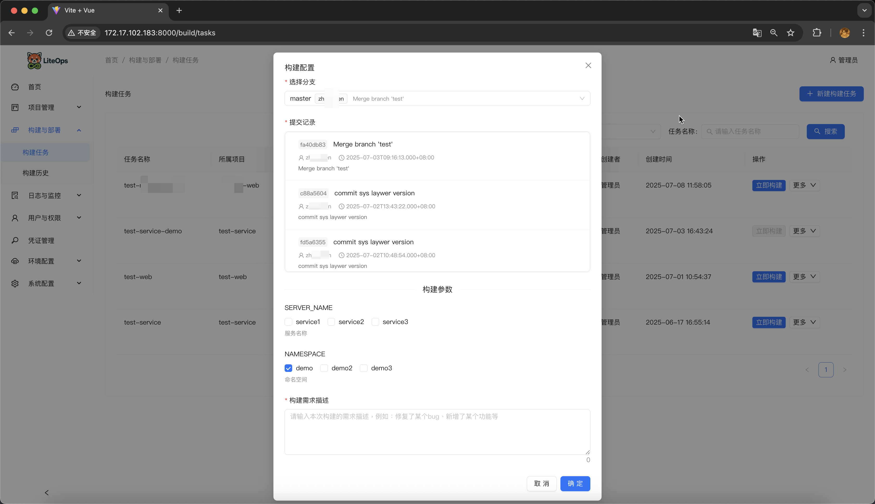 LiteOps CICD 平台概述LiteOps 是一个专注实用性的 CI/CD 平台。只解决真问题 —— 自动化构建、部署 一体化平台。 功能预览