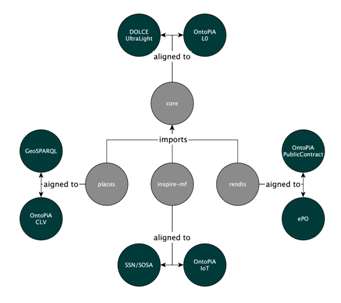 core ontology with DOLCE ontology, core ontology with OntoPIA ontology,