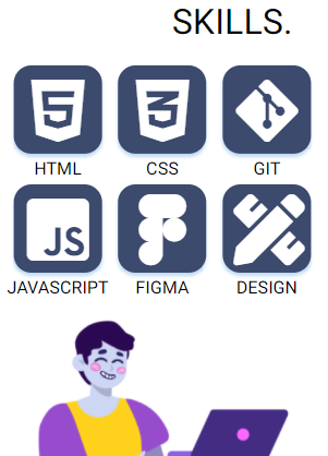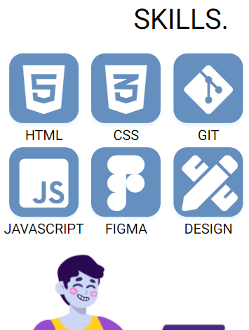 On my home page I have a little bit of information about myself, my skills represented by icons and some interactivity when you hover over the icons, and boxes you can click