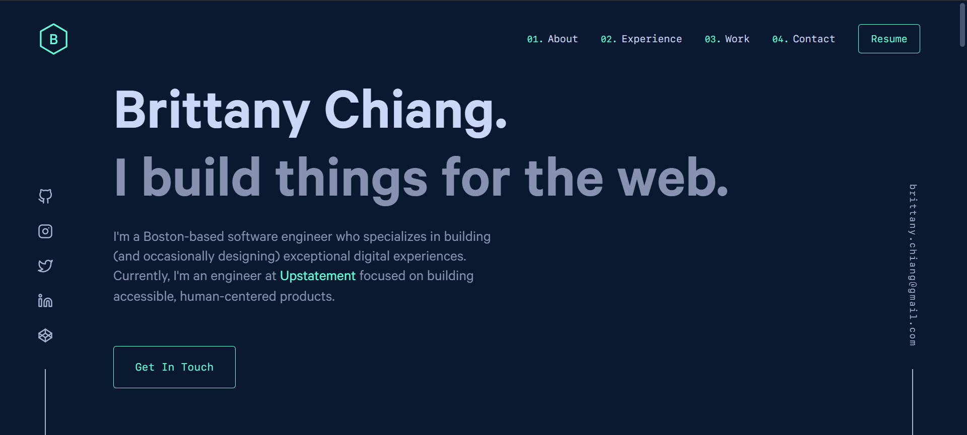 Brittany Chiang is a webdev whose design I really liked for its simple and clean design, yet extremely responsive. www.brittanychang.com is her website. I think she used bootstrap from inspecting her page, but still there was a lot I saw that I thought was achievable with my website.