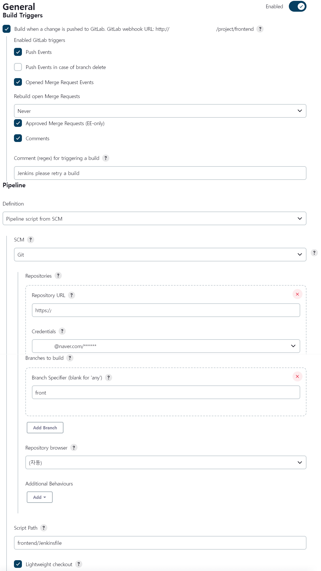 프론트 및 소켓서버 빌드 젠킨스파일(frontend/Jenkinsfile)